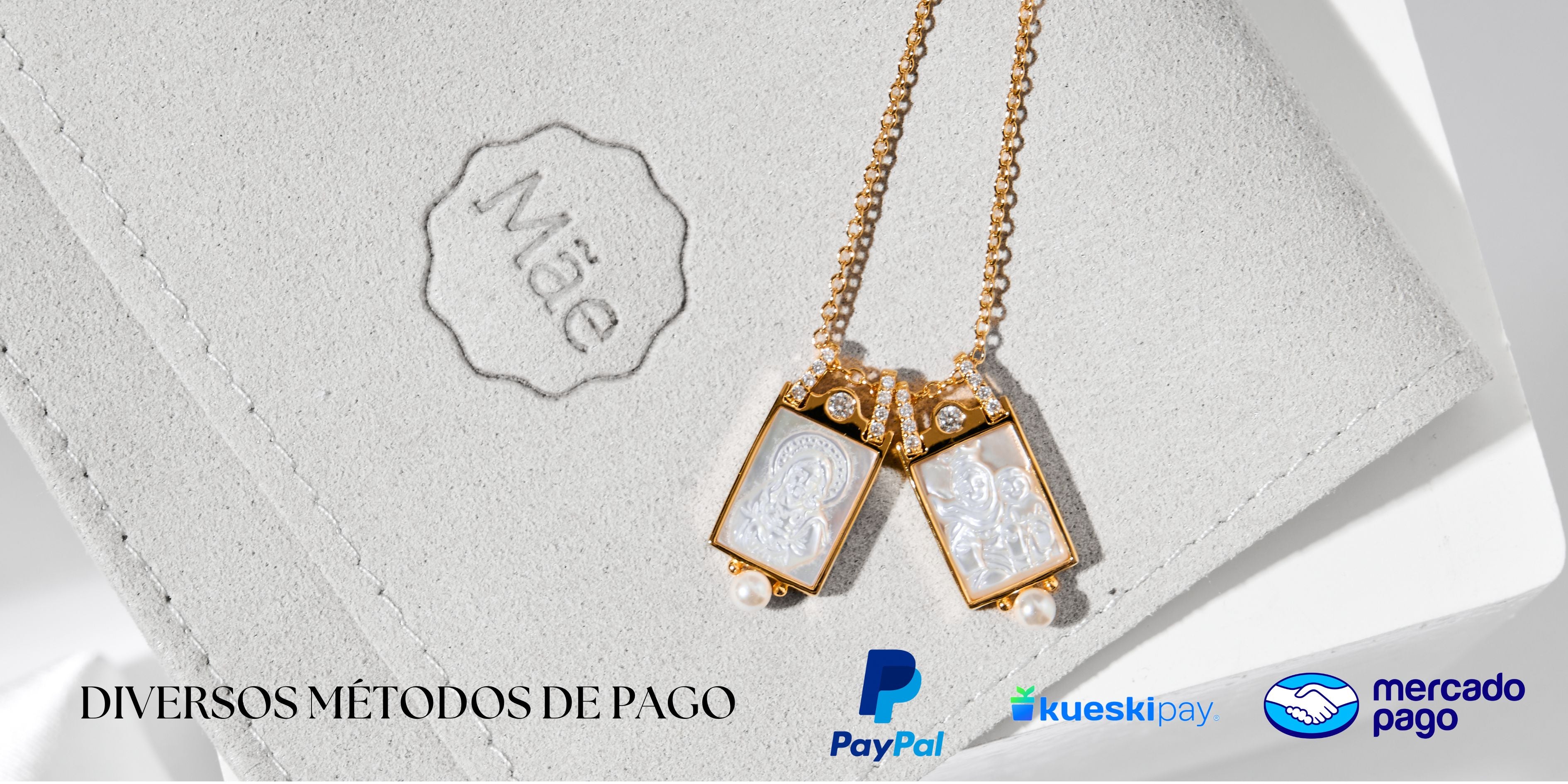 Escapulario de la Virgen del Carmen madre perla con circonias y perlitas