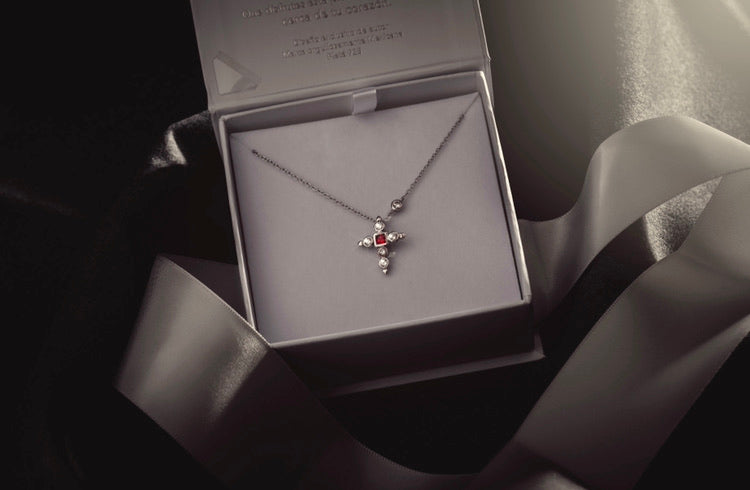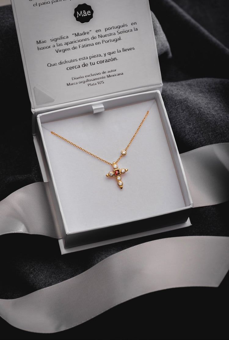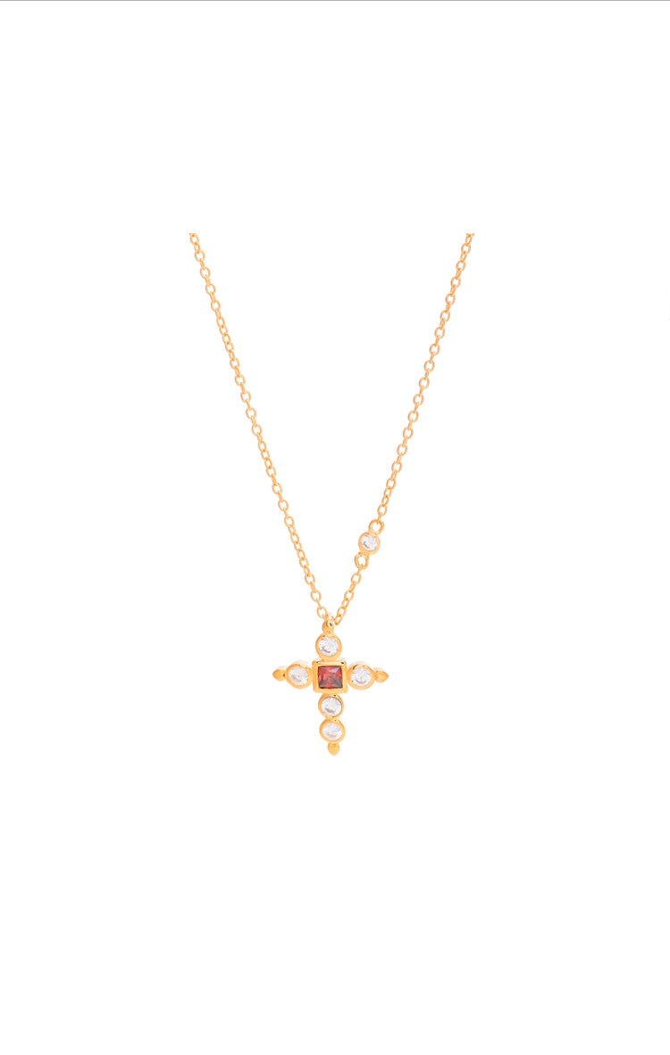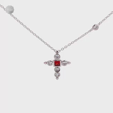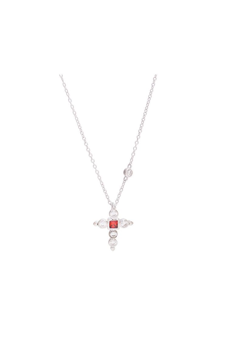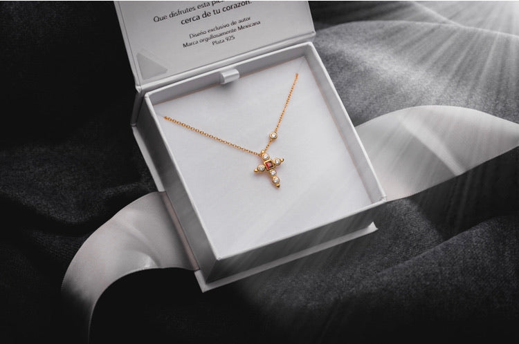Una circonia roja el el centro enmarcan las circonias blancas que lleva esta hermosa Cruz.