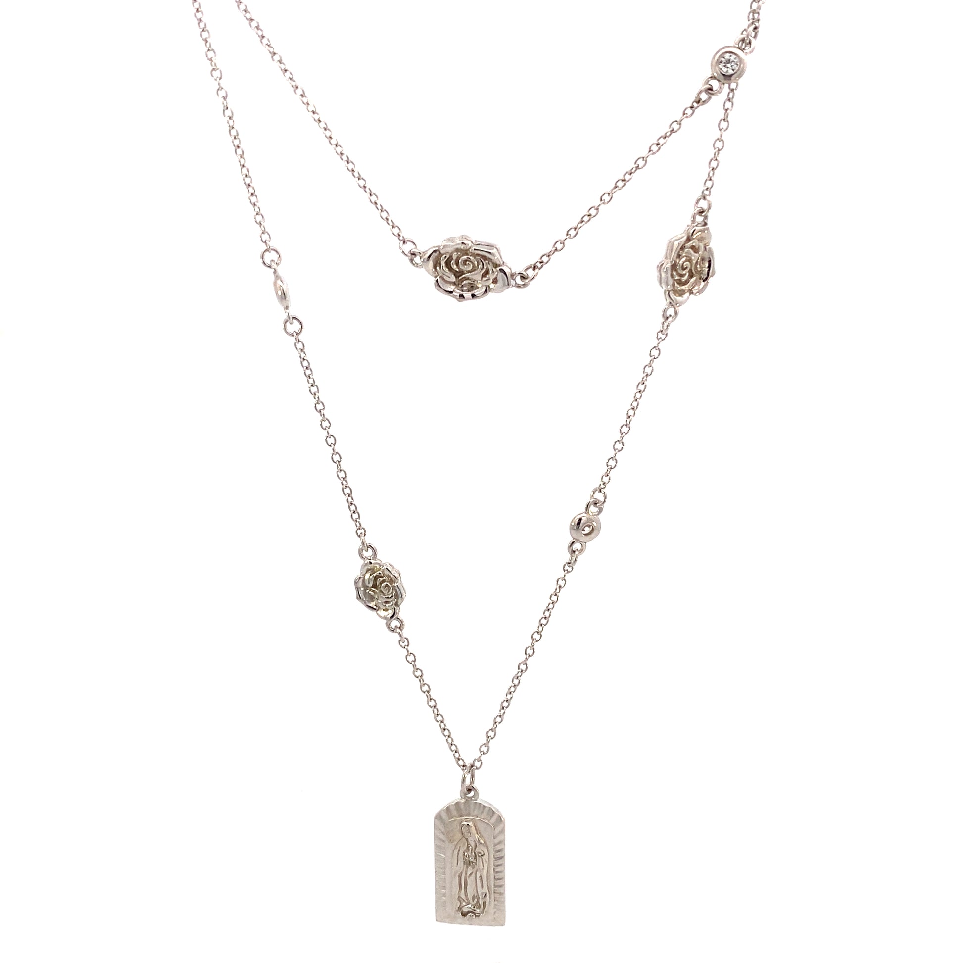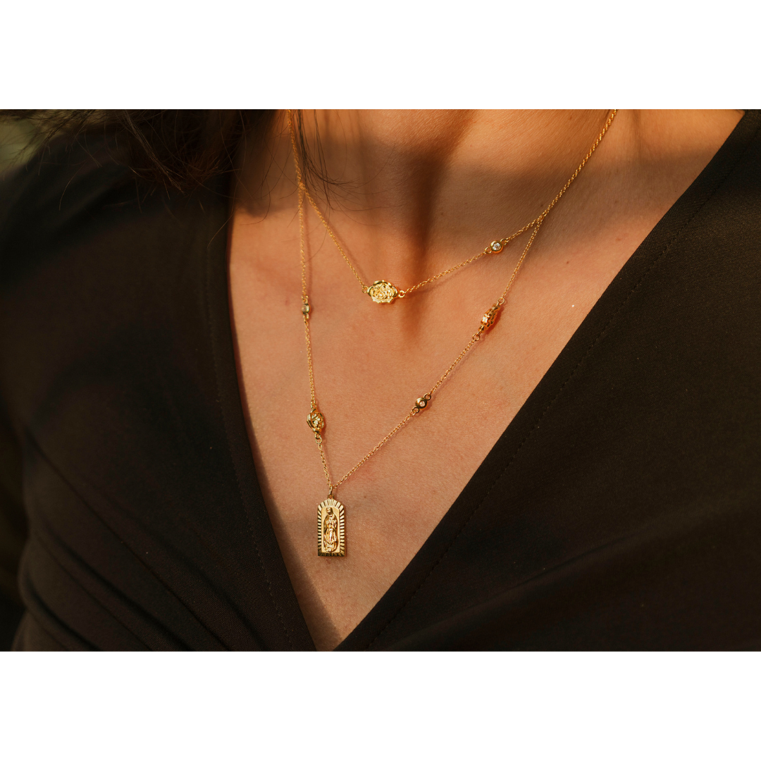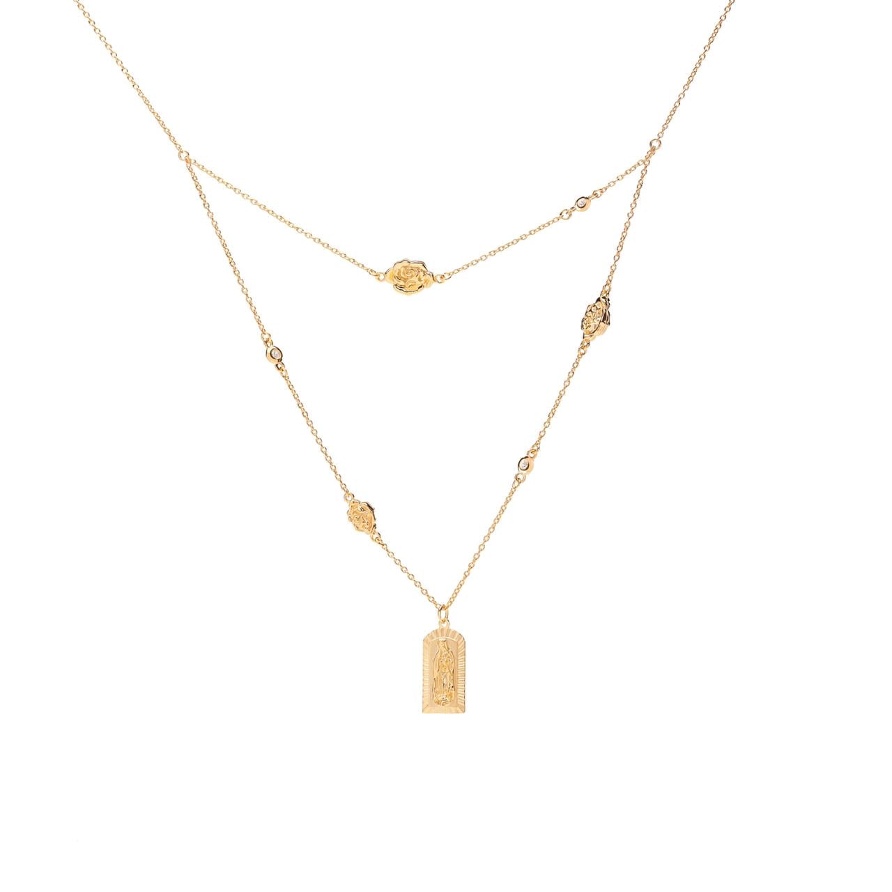 Collar Virgen de Guadalupe cadena doble con rosas y circonias